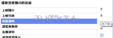 2、編輯頁面呈現的順序:可以在顯示頁面上選網頁並進行上移、下移、移除(注意:縮排功能在這裡使用的話在橫向導覽列中就看不到了)
